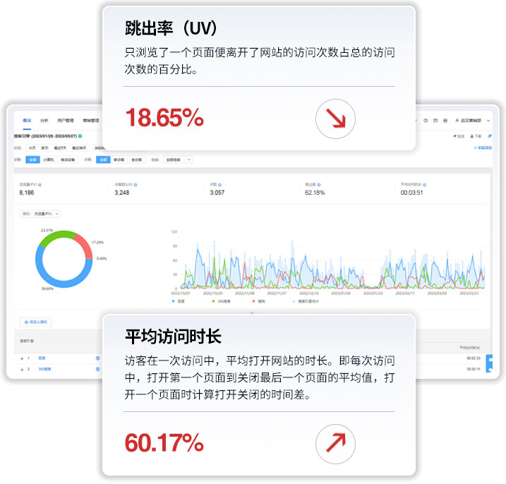 網(wǎng)站跳出率和平均訪問時長可以反映出網(wǎng)站推廣關(guān)鍵詞的選擇是否精準,文案的撰寫是否優(yōu)秀,著陸頁的設(shè)計是否符合用戶體驗