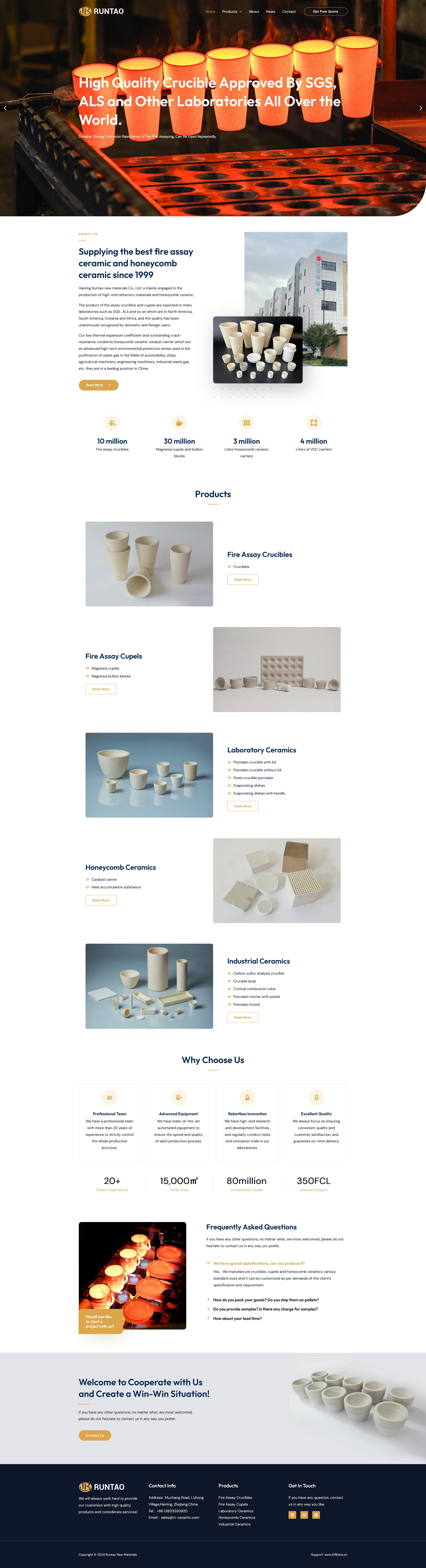 海寧市潤濤新材料有限公司成立于1999年。公司位于美麗的水鄉(xiāng)浙江嘉興。公司主要生產(chǎn)高端耐火材料和蜂窩陶瓷。該公司擁有 1000 萬只火試金坩堝、3000 萬只灰皿、300 萬升內(nèi)燃機用堇青石蜂窩陶瓷載體和 400 萬升 VOC 載體的生產(chǎn)能力。